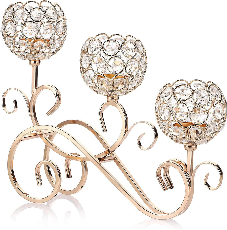 SUMNACON Golden S-Form Kristall Kerzenständer 3-Arm-Kristallschalen aus Glas Metall Kerzenhalter Tee