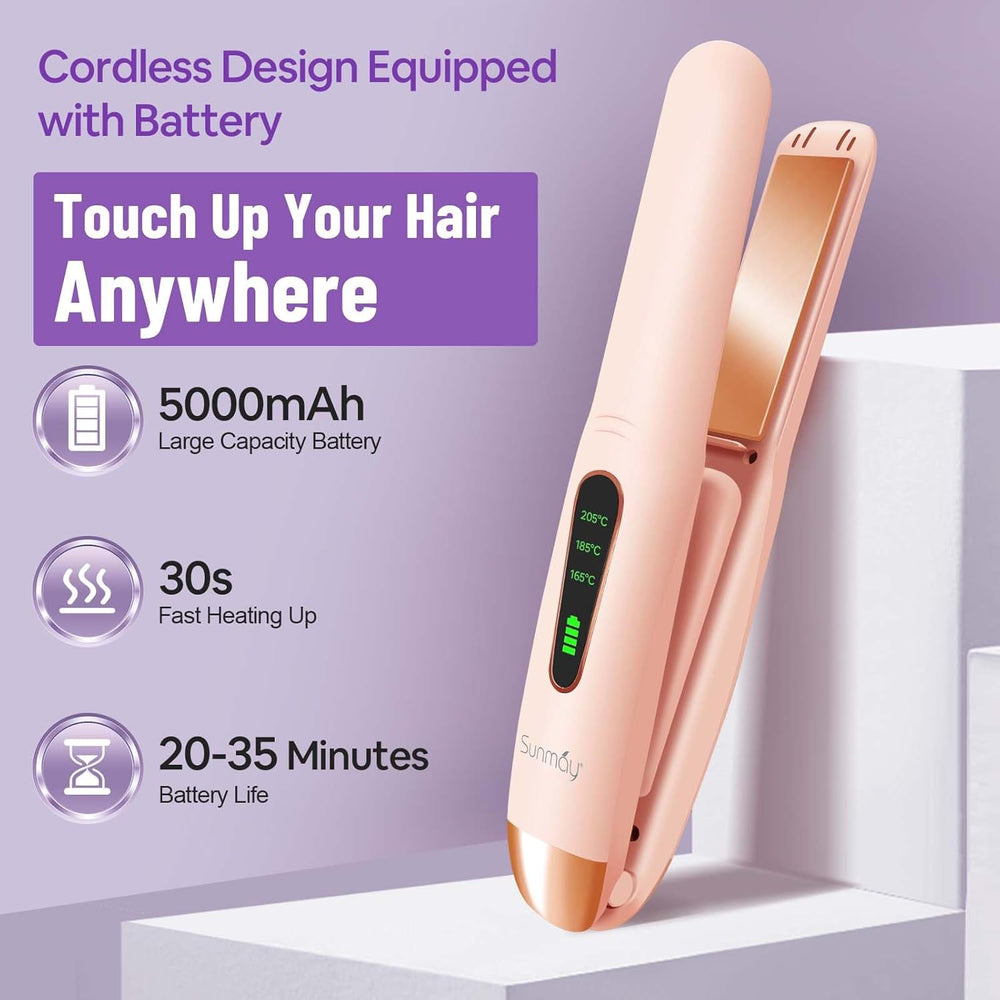 SUNMAY Voga Glätteisen Kabellos mit 5000mAh Akku, Akku Haarglätter und Lockenstab 2 in 1, Mini Tragb