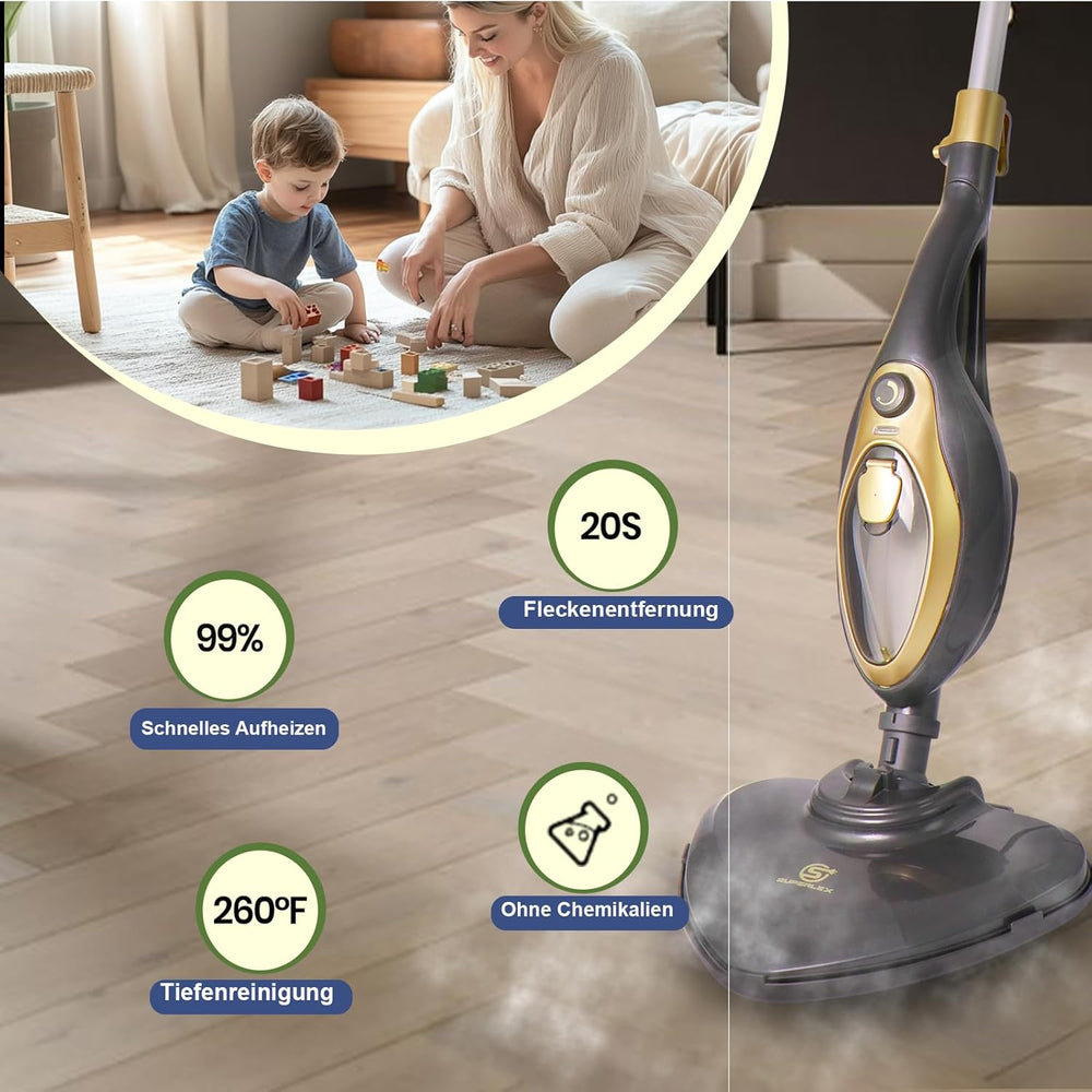 SUPERLEX Dampfreiniger Dampfbesen Dampf Mop 12-in-1 Multifunktions Boden&Hand-dampfreiniger 1500W Bl