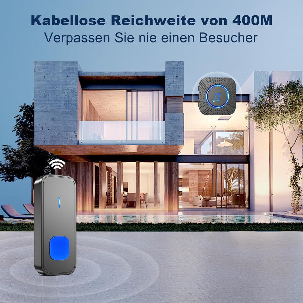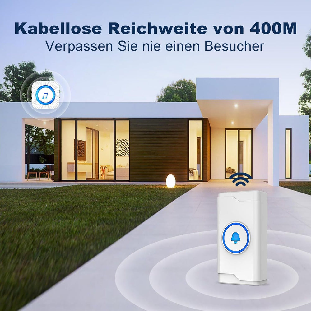 Funkklingel 400M Reichweite Funk Klingel haustür IP55 Aussen Wasserdicht Kabellose Türklingel Sender
