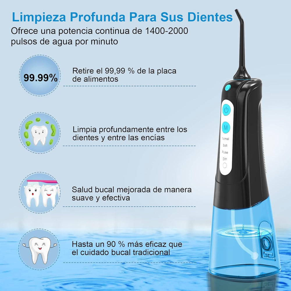 SURFOU Munddusche Kabellos Mundduschen 300ML 4 Modi 4 Düsen, Mundduschen Reise Water Flosser IPX7 Wa