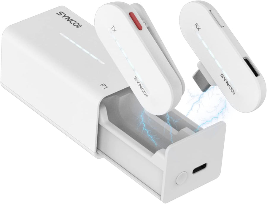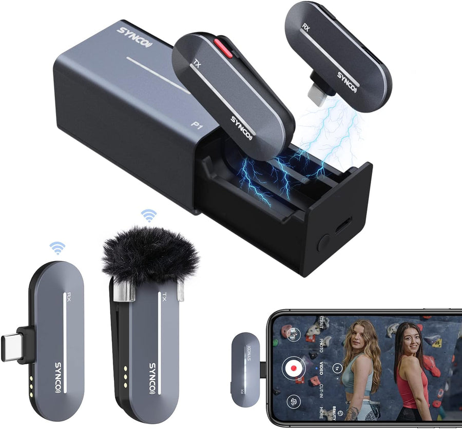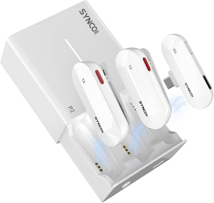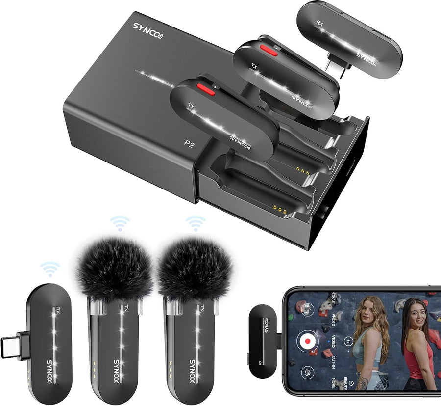 SYNCO Lavalier Mikrofon Kabellos, P2T【Type-C】 Smartphone Funkmikrofon Wireless mit Ladebox & 2*RX 1*