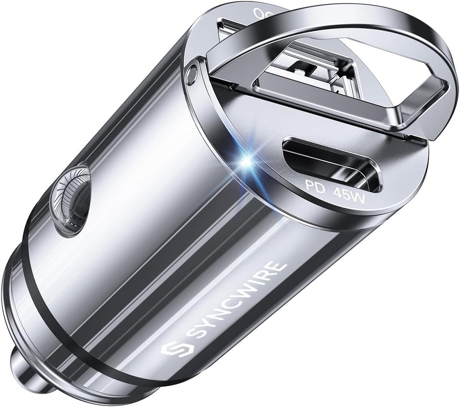 SYNCWIRE 90W Zigarettenanzünder USB C & USB Auto Adapter [PD 45W & QC 45W] Super Mini Ganzmetall KFZ