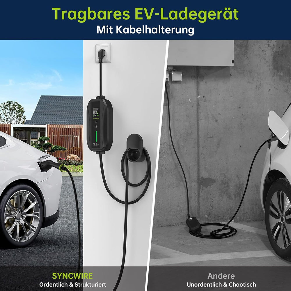 SYNCWIRE Typ 2 Ladekabel Schuko Elektroauto 7,5m Tragbare EV Charger 6/8/10/13/16A Einstellbare Stro