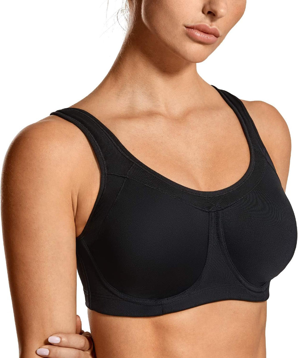 SYROKAN Sport BH Damen Ohne Bügel Starker Halt Shock Absorber BH Bequemer Gepolstert 70B Schwarz, 70