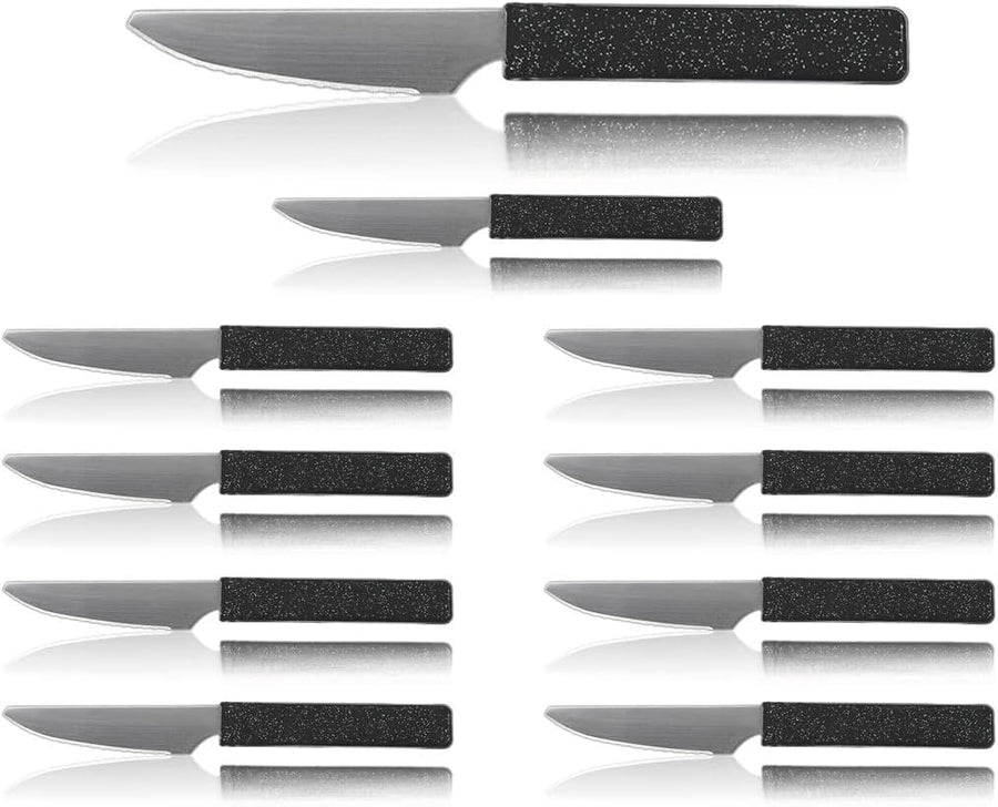 LaXon Messer, Frühstücksmesser, 10 Stk. schwarz, Brotmesser mit Wellenschliff, schwarzes Messer Set,