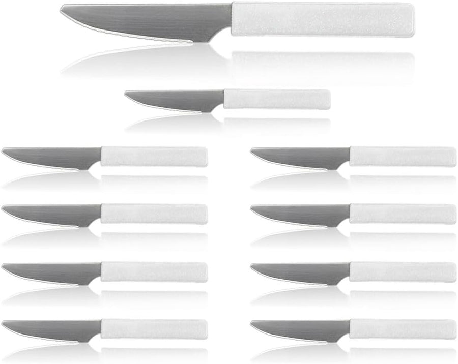 LaXon Messer, Frühstücksmesser weiss, 10 Stk. Messer-Set, Brotmesser mit Wellenschliff, weisse Butte