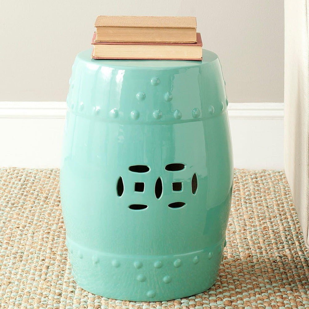 SAFAVIEH Modern Keramik Gartenhocker, Rotkehlchen-Ei-Blau, 35 X 35 X 45 Türkis, Türkis