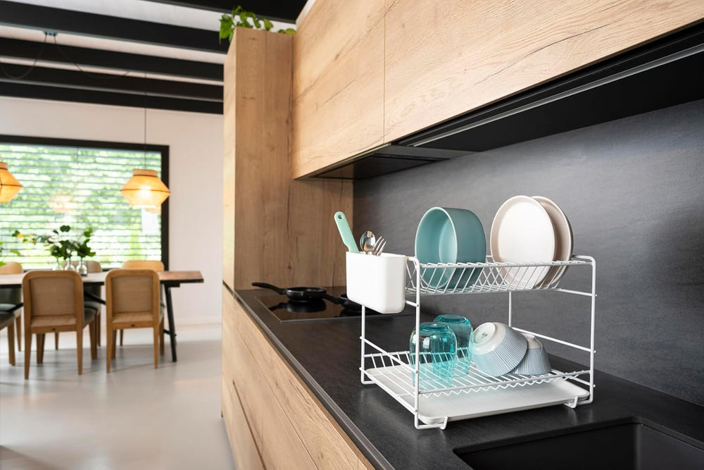 Kleiner Geschirrabtropfer aus Stahl mit weisser Kunststoffbeschichtung, 38,5x25x28 cm