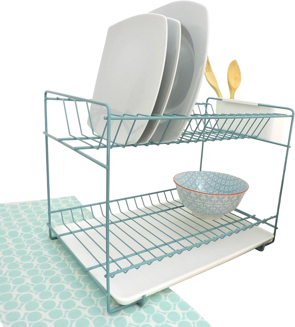 Sauvic Türkisblauer Vintage-Geschirrabtropfer 38,5x25x28 cm
