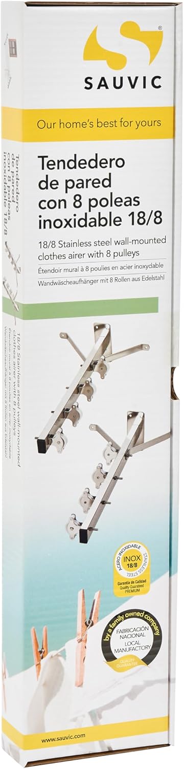 Sauvic Wandwäscheaufhänger mit 8 Rollen aus Edelstahl