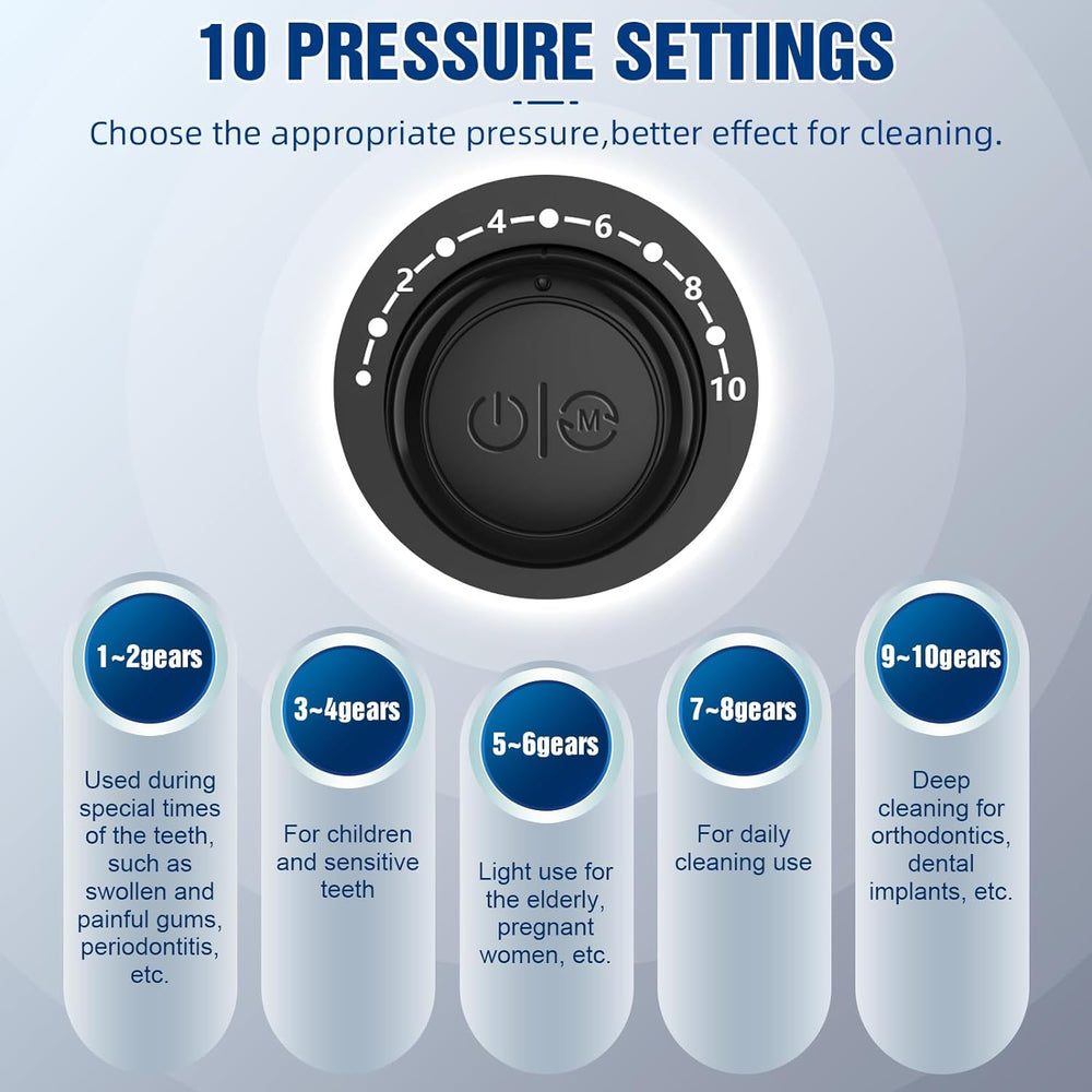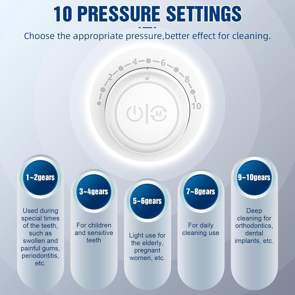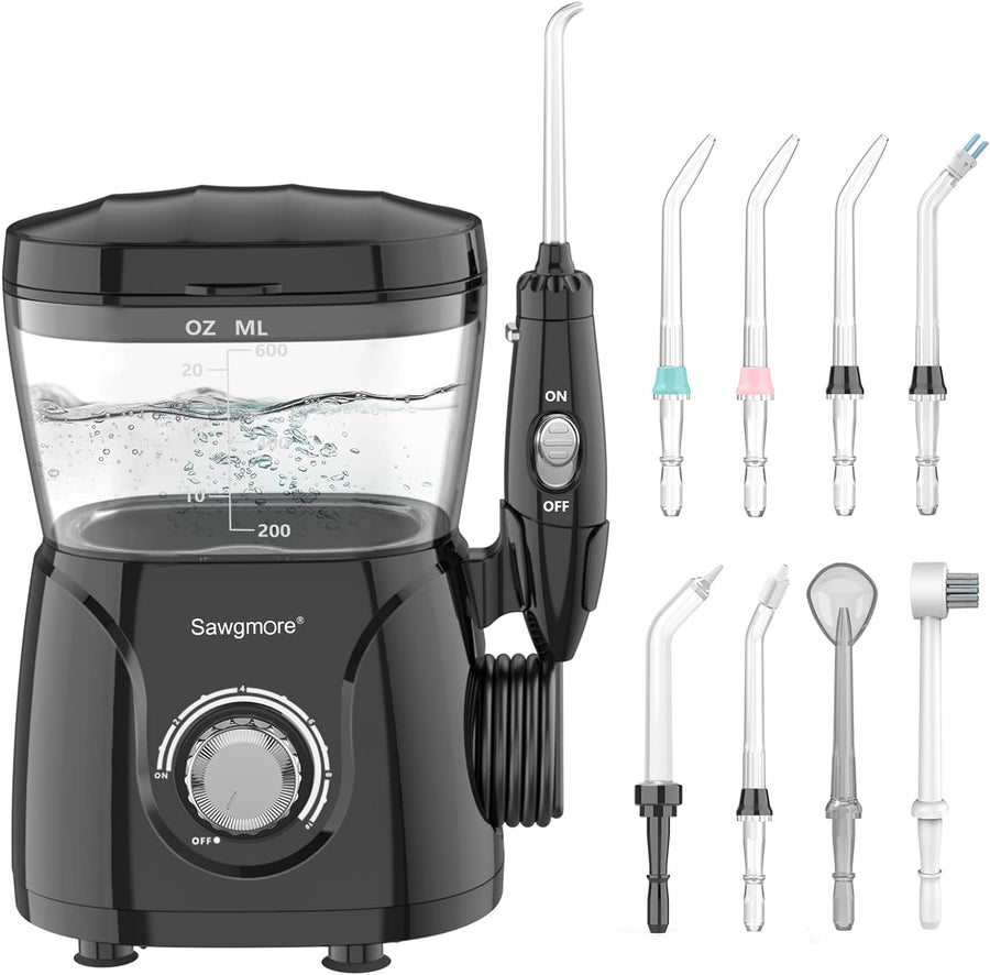 Sawgmore Elektrische Munddusche mit 10 Druckstufen und 8 Düsen,Professional Waterflosser für Zanrein