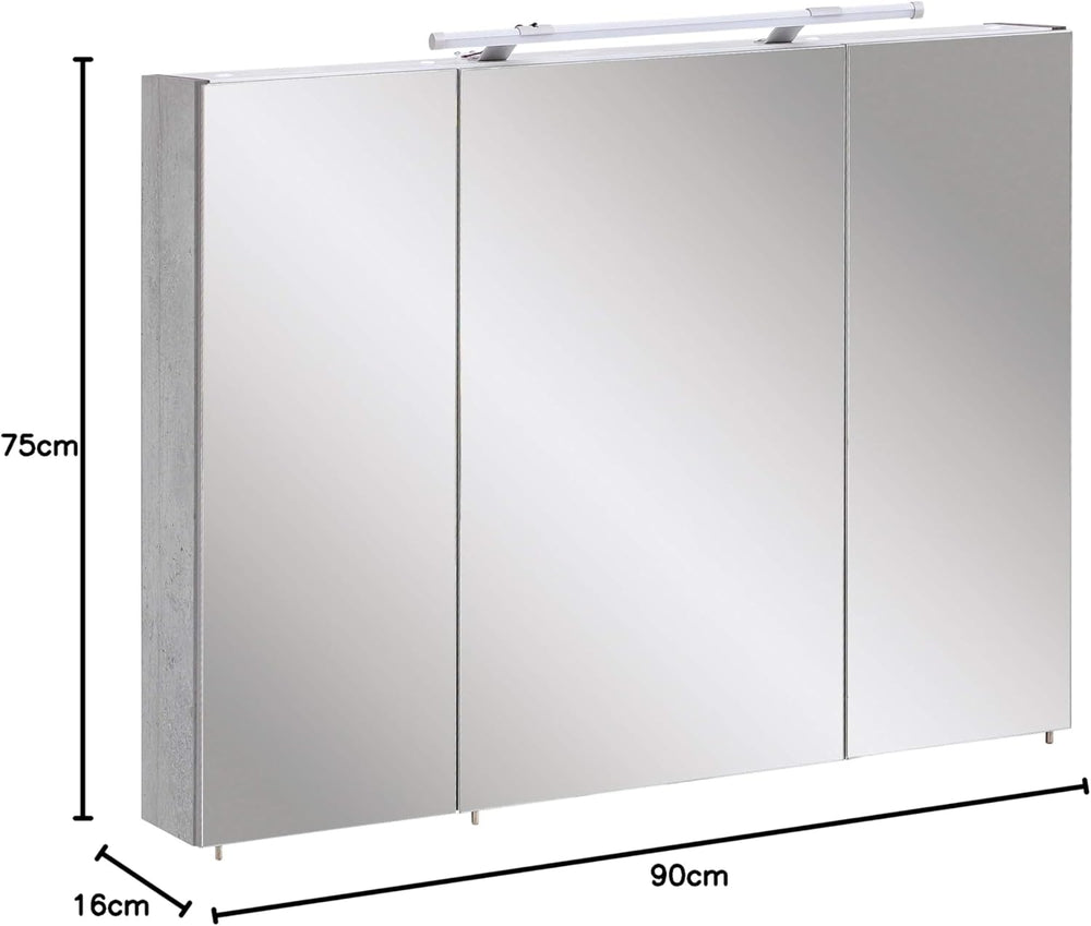 Schildmeyer Bello Spiegelschrank, Holzdekor, Steingrau, 90.0 x 16.0 x 75.0 cm 90 cm Single, 90 cm Si
