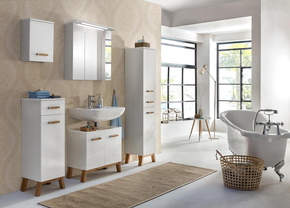 Schildmeyer 2 türiger Waschbeckenunterschrank, Holz, weiss Glanz, 65x35x61 cm