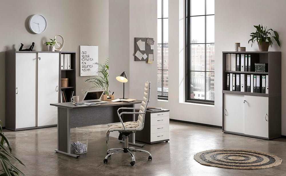 Möbelpartner Bürocontainer, Holzwerkstoff, esche grau Dekor/weiss matt, 41,6 x 50 x 53,4 cm Esche Gr