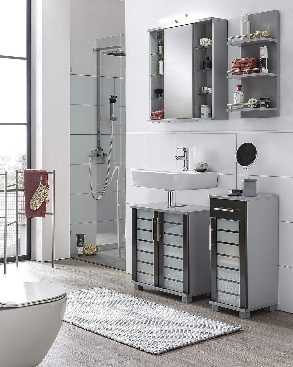 Schildmeyer 127398 Spiegelschrank, 70 x75 x 16 cm, steingrau 70 cm Single, 70 cm Single