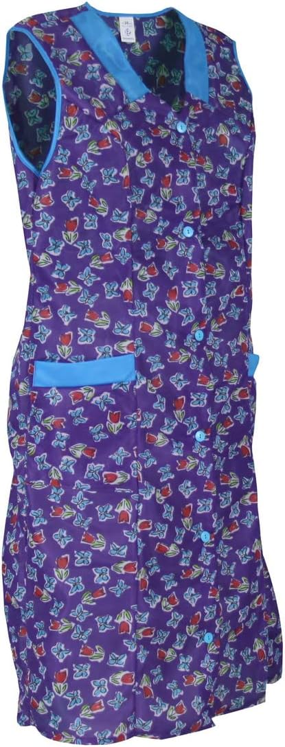Knopfkittel Baumwolle bunt Kochschürze Hauskleid Kittel Schürze ohne Arm 50 violett, 50 violett