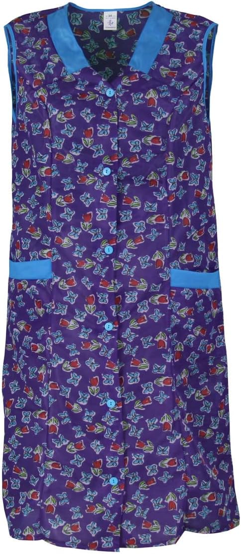Damenkittel ohne Arm Kochschürze Kittel Schürze Knopfkittel einfarbig Hauskleid 36 Lila, 36 Lila