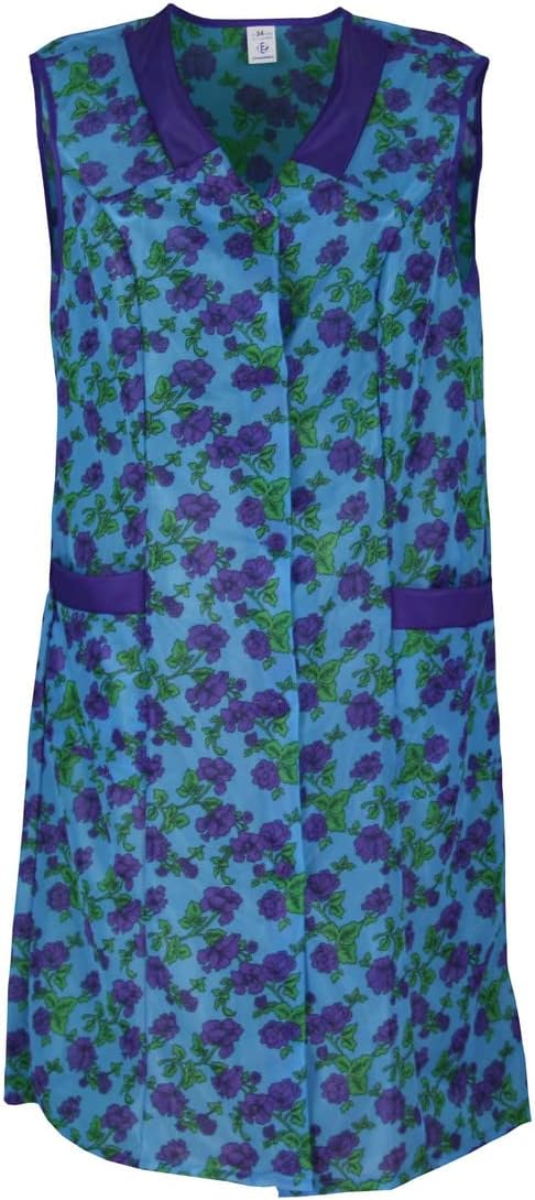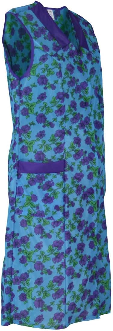 Damenkittel ohne Arm Kochschürze Kittel Schürze Knopfkittel einfarbig Hauskleid 42 Blau, 42 Blau