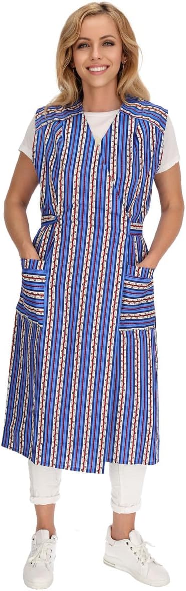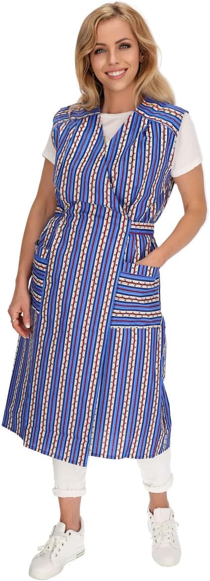 Reissverschluss Kittel RV Hauskleid Baumwolle Schürze Kochschürze 38 Blau, 38 Blau