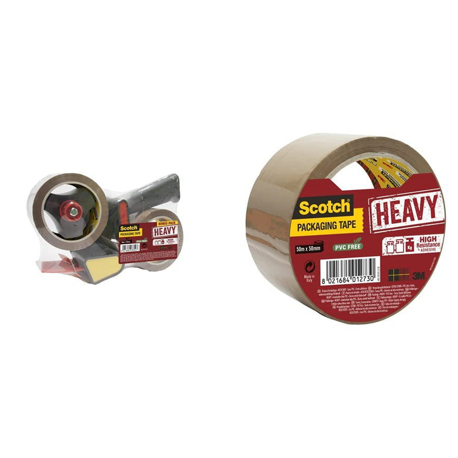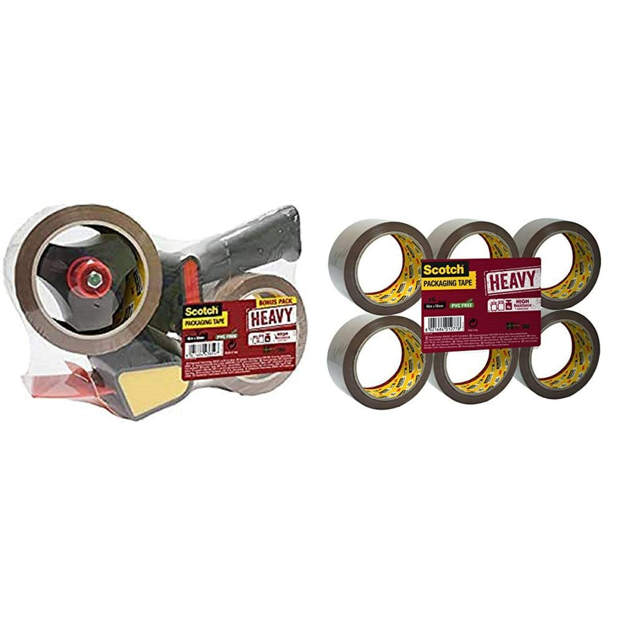 Scotch HV5066DB Handabroller HEAVY, 50 mm x 66 m, inklusiv 2 Rollen Klebeband, braun + HV5066FB Verp