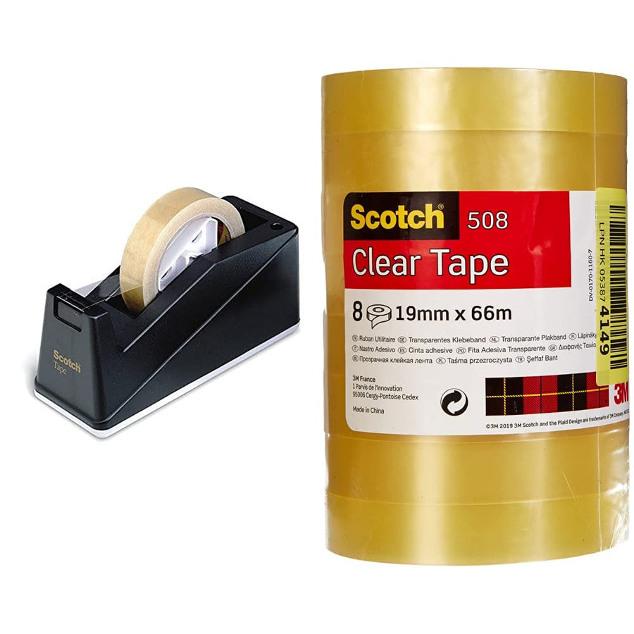 Scotch Schreibtisch-Klebebandabroller, Schwarz + Scotch Magic Unsichtbares Klebeband, 19 mm x 33 m,