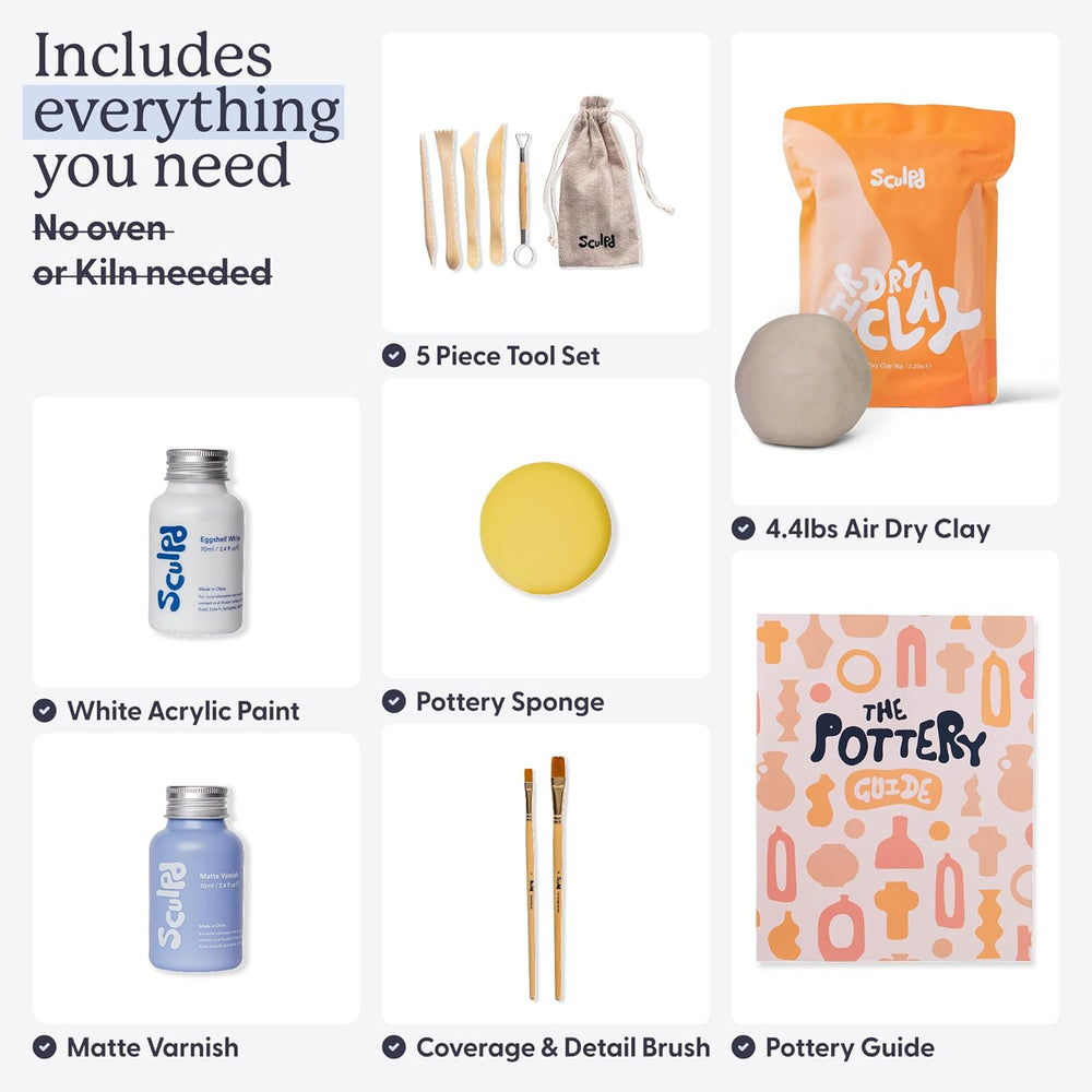 Sculpd Pottery Starter Kit – Komplettes lufttrockenes Ton-Einsteigerset für 2 Erwachsene: Enthält Bi