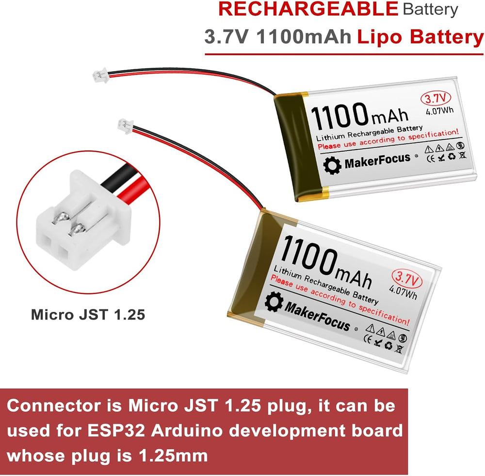4 Stück 3,7V 1100mAh Lithium Batterie 1S 1C LiPo Akku mit Schutzplatine, Isolierband und Micro JST 1