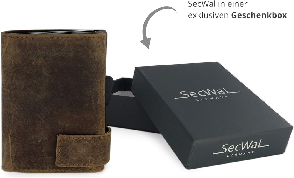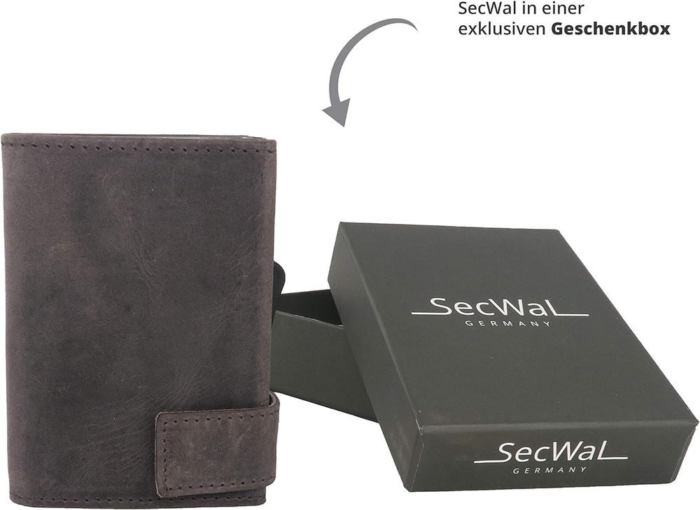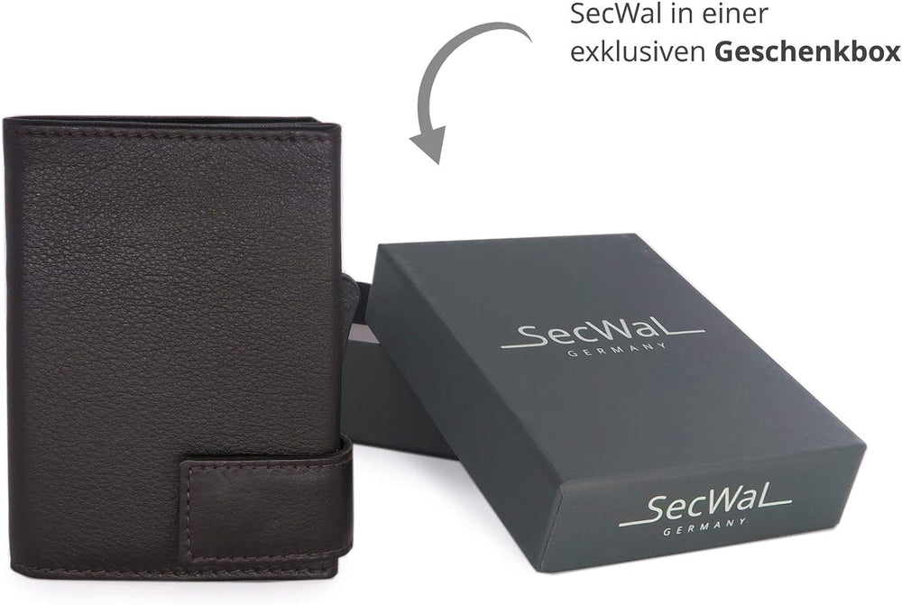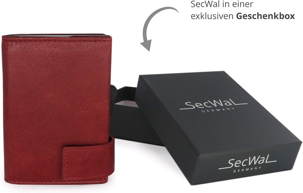 SecWal Kartenetui mit Münzfach Druckknopf inkl. Geschenkbox - Made in Germany - Echtleder Mini Geldb