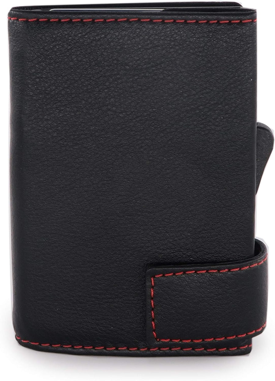 SecWal Kartenetui mit Münzfach Reissverschluss (Schwarz-Rot), Schwarz-rot