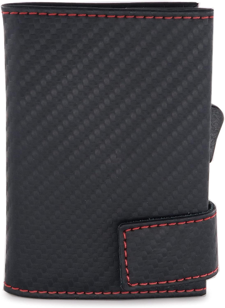 SecWal Kartenetui mit Münzfach Reissverschluss (Schwarz-Rot Carbon), Schwarz-rot Carbon