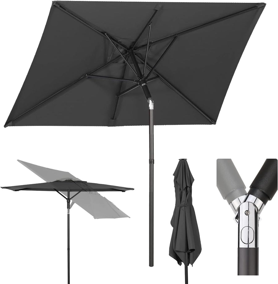 Sekey® 180×130cm Sonnenschirm für Balkon, Terrasse& Garten,Windfest Kippbar Grau UPF 50+ Rechteckig