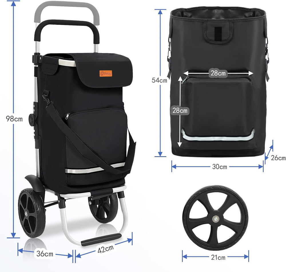 Sekey XXL Einkaufstrolley – Klappbarer, Kompakter Trolley aus leichtem Aluminium mit Höhenverstellba