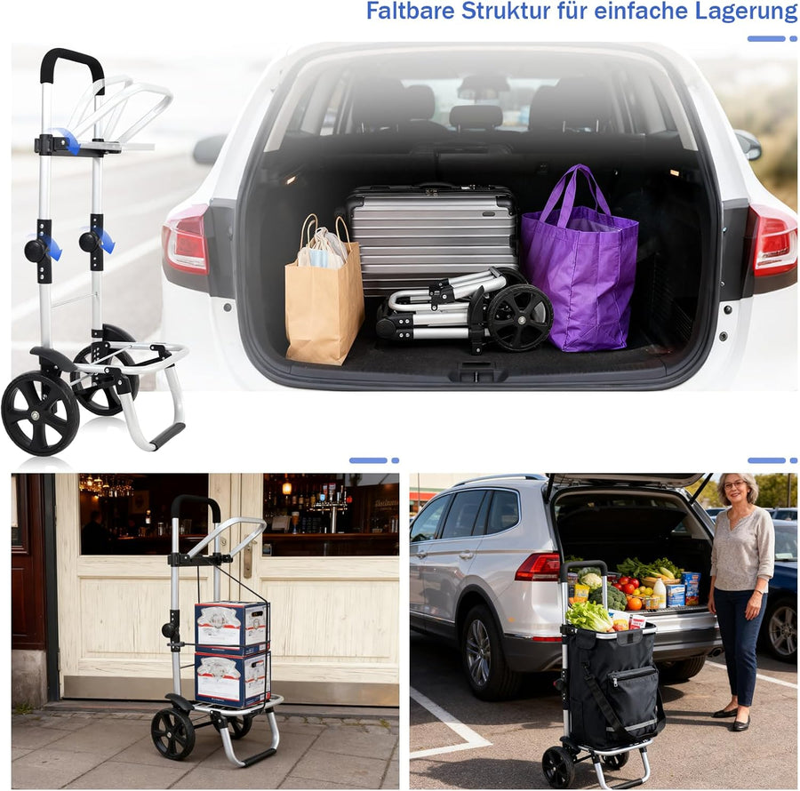 Sekey Faltbarer Einkaufstrolley – Kompakter, Leichter Einkaufswagen mit Höhenverstellbarem Griff, Al