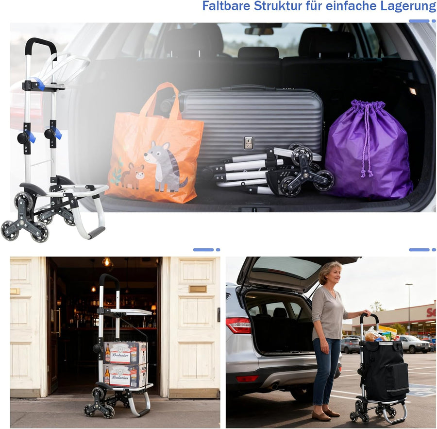 Sekey XXL Einkaufstrolley Treppensteiger mit 3 Rädern, Einkaufswagen für Camping und Einkäufe mit Hö