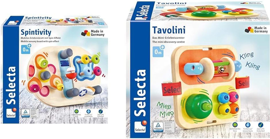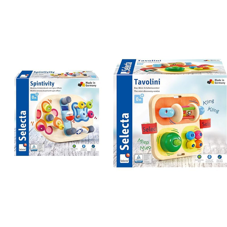 Selecta 62064 Spintivity, Motorikbrett aus Holz, 20 cm, Spinitivity & 62014 Tavolini, Motorikspielze