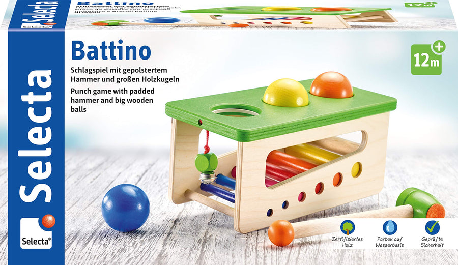 Selecta 62017 Battino, Klopfbank aus Holz, 22 cm, 10 Monate to 3 Jahre ,bunt
