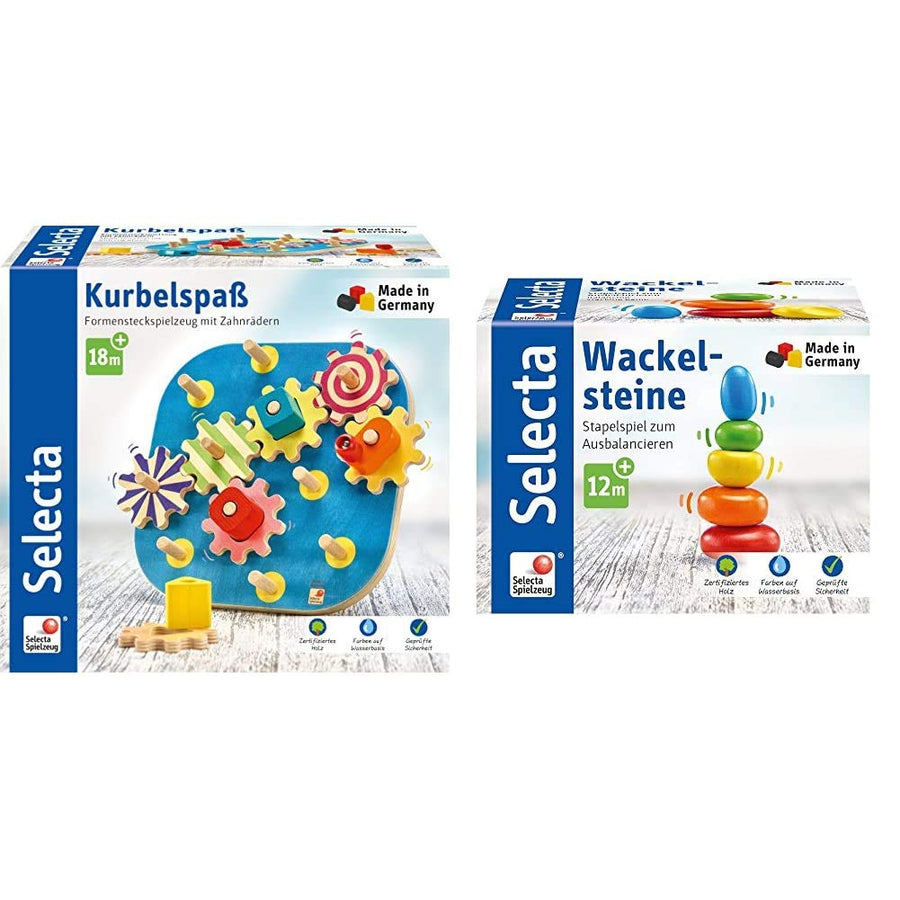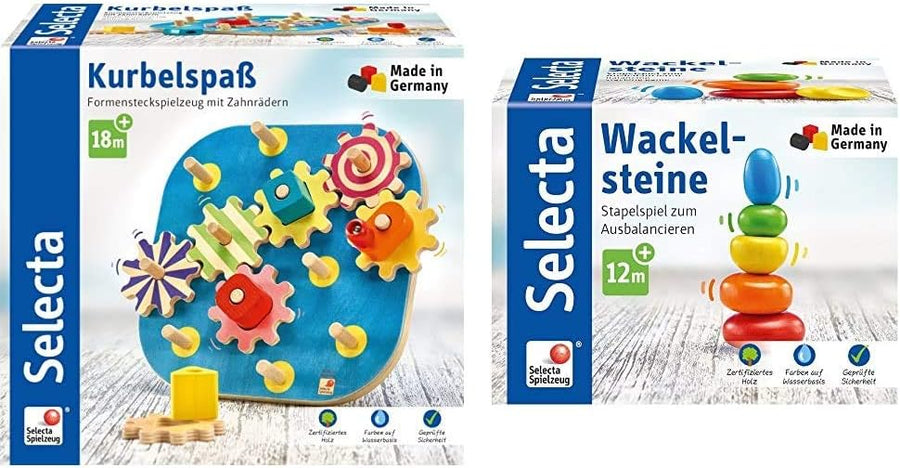 Selecta 62011 Kurbelspass, Motorikspielzeug aus Holz, 20, 5 cm & 62009 Wackelsteine, Stapelspielzeug