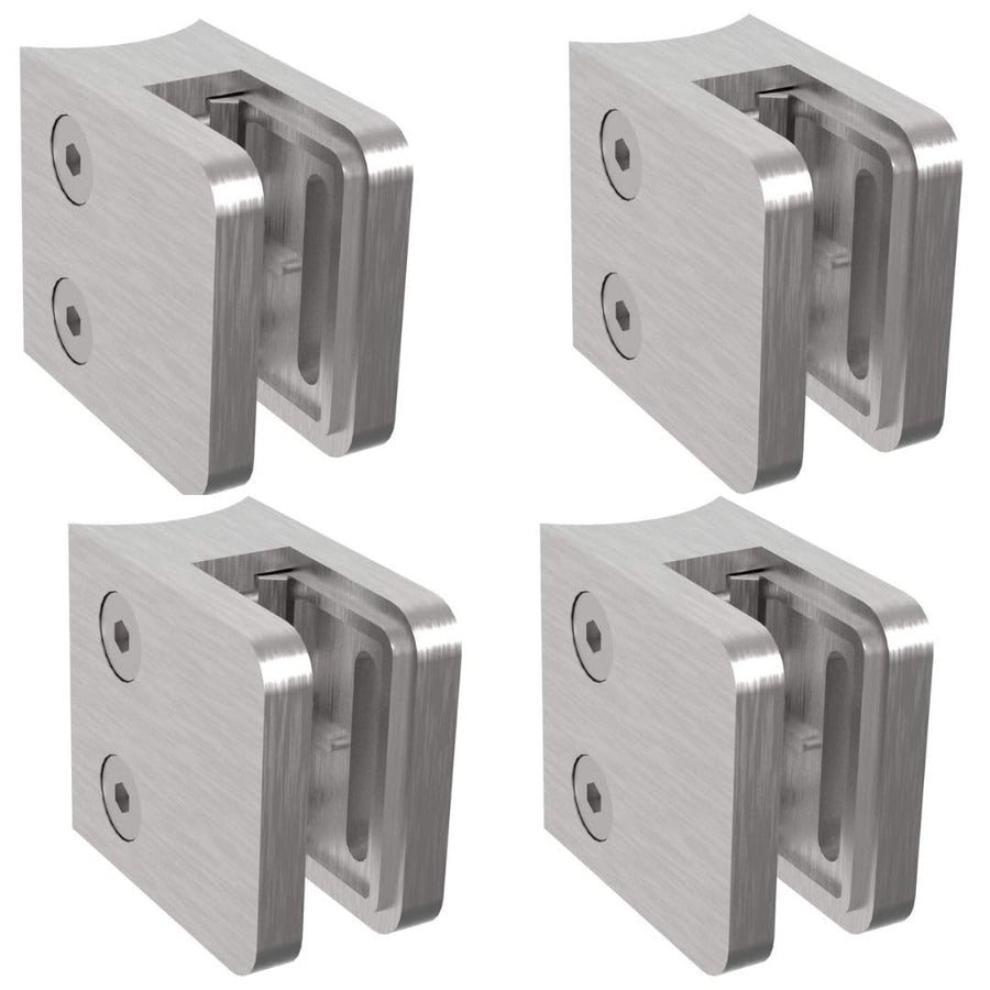 Sellon24® Glashalter 4 Stück Edelstahl Glasklemme Klemmhalter Geländer V2A Eckig 45 x 45 x 28 mm ink