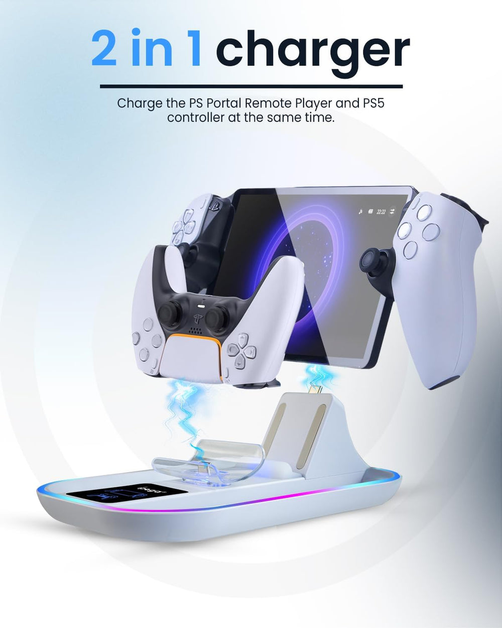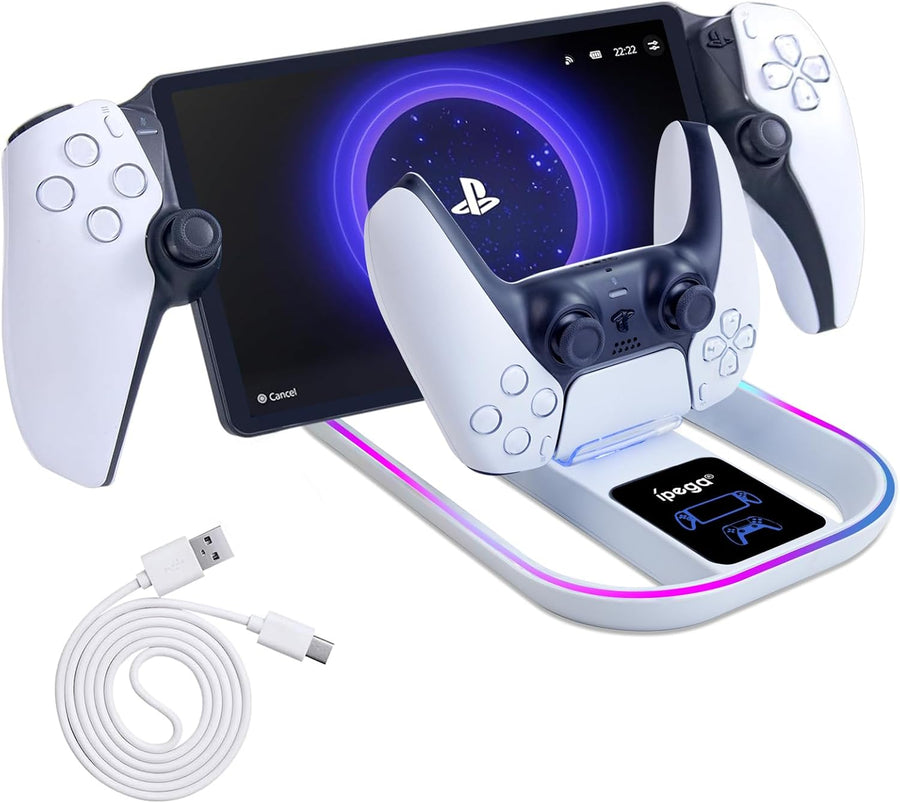 Ladestation für PS Portal und PS5 Controller,Tragbares Ladegerät mit RGB 14 Lichteffekt für PS Porta