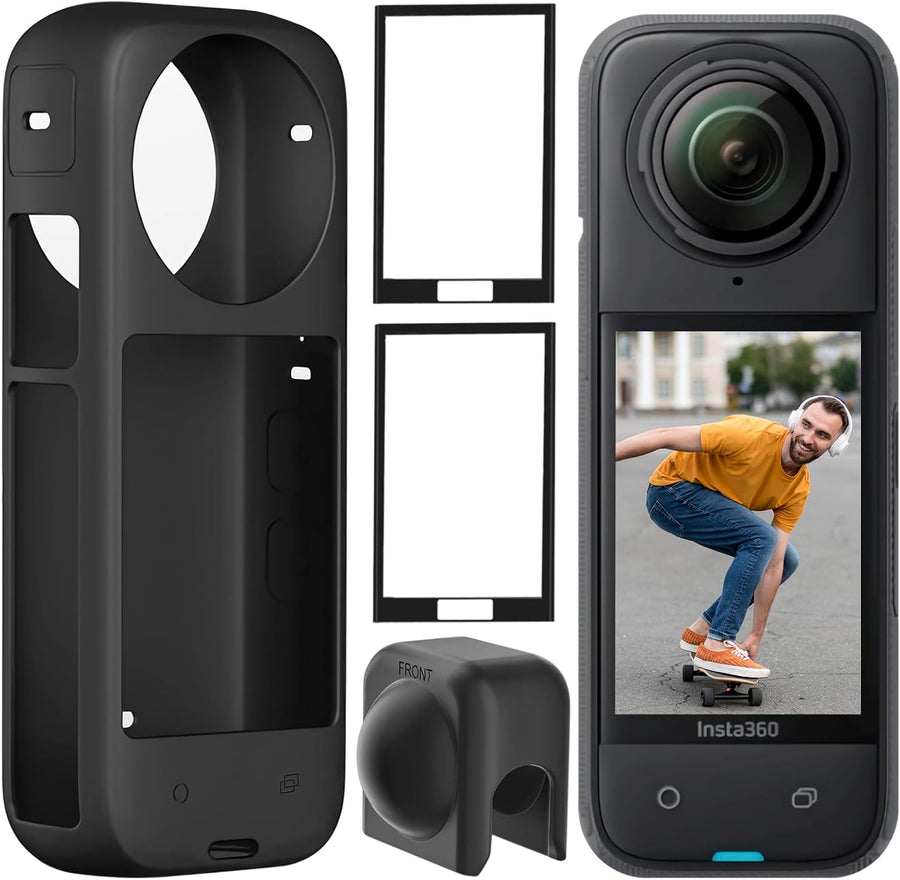 Semaiki Silikonhülle für insta360 X4,Silikonschutz mit Objektivdeckel und 2X Displayschutzfolien kom
