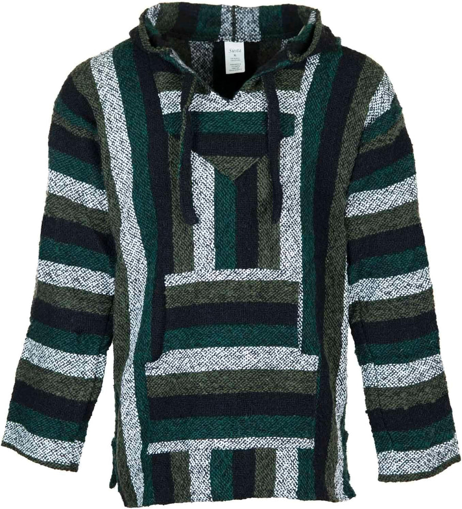 Siesta Baja Hoodie – Mexikanischer Jerga Hippie Pulli Kapuzenpullover für Herren und Damen M Minzige