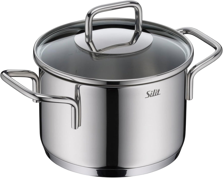 Silit Achat Milchtopf mit Glasdeckel 14 cm, hoher Kochtopf 1,7l, Edelstahl teilmattiert, Induktion,