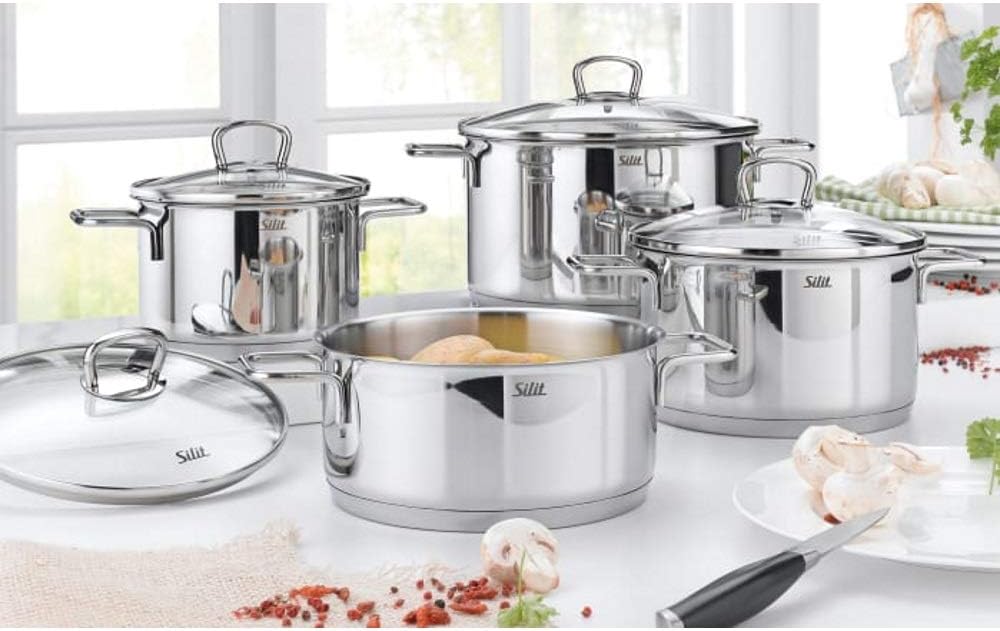 Silit Alicante Topfset Induktion 10-teilig, Kochtopfset Induktion mit Glasdeckel, Edelstahl poliert,