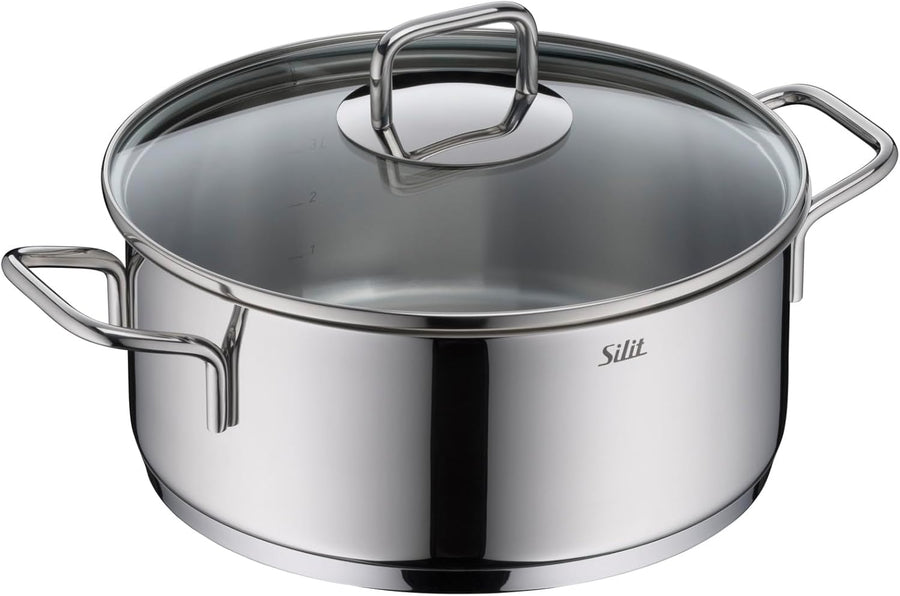 Silit Extra Cook, Bratentopf 20 cm mit Glasdeckel, Innenskalierung, breiter Schüttrand, hochwertiger