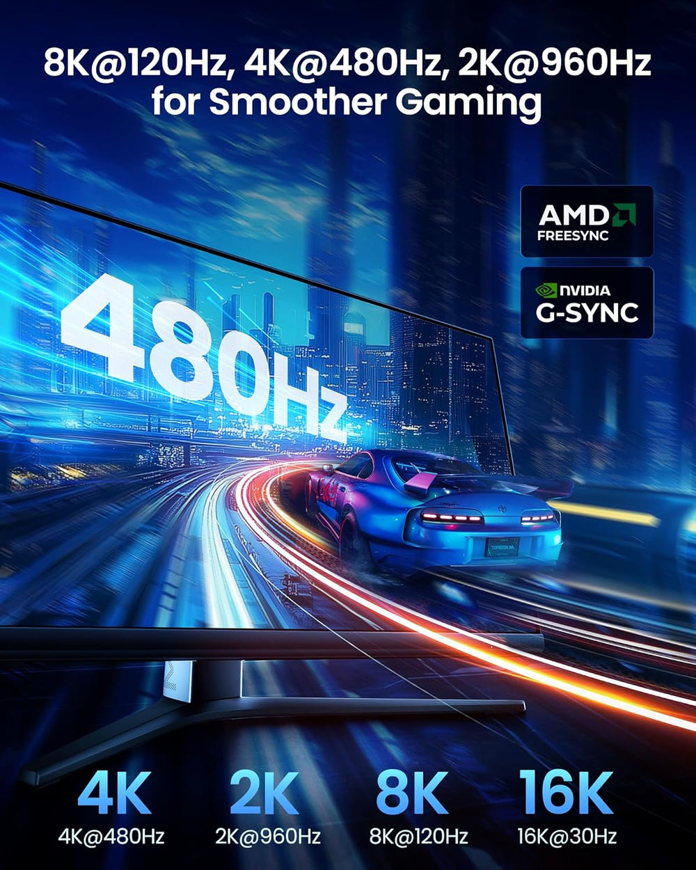 Silkland 80Gbps DisplayPort Kabel 2.1 2M [VESA-Zertifiziert] DP80, [8K@240Hz 4K@540Hz 360Hz 240Hz 18