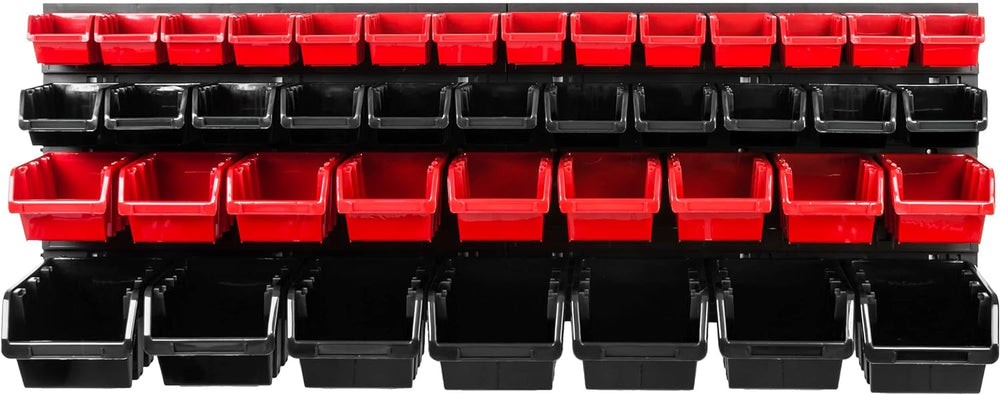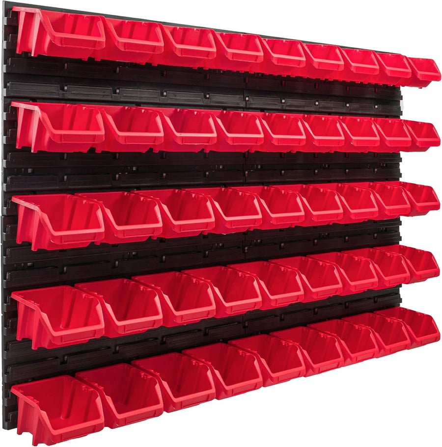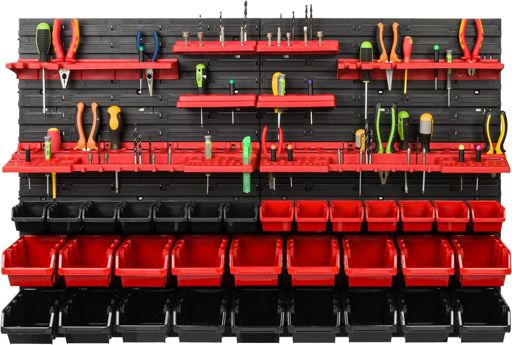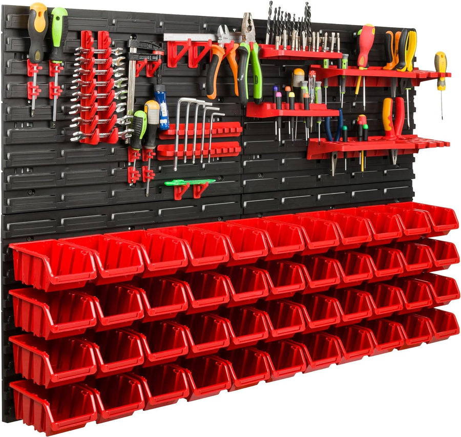 Lagersystem Werkstattregal | 115 x 78 cm | 44 stck. Box | Wandregal mit Werkzeughalterungen und Stap