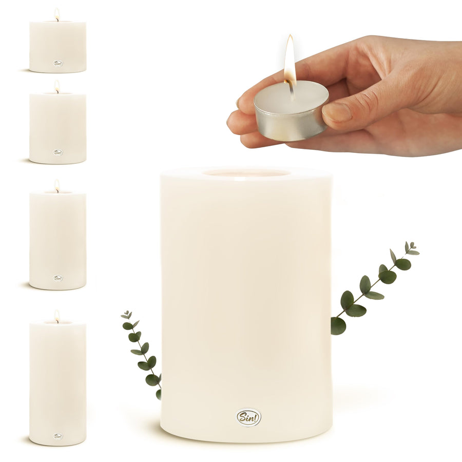 Sin! 4er Set Teelichthalter Classic warmweiss - ∅ 7 cm - Höhe 9 cm, Dauerkerze mit Teelicht in Kerze