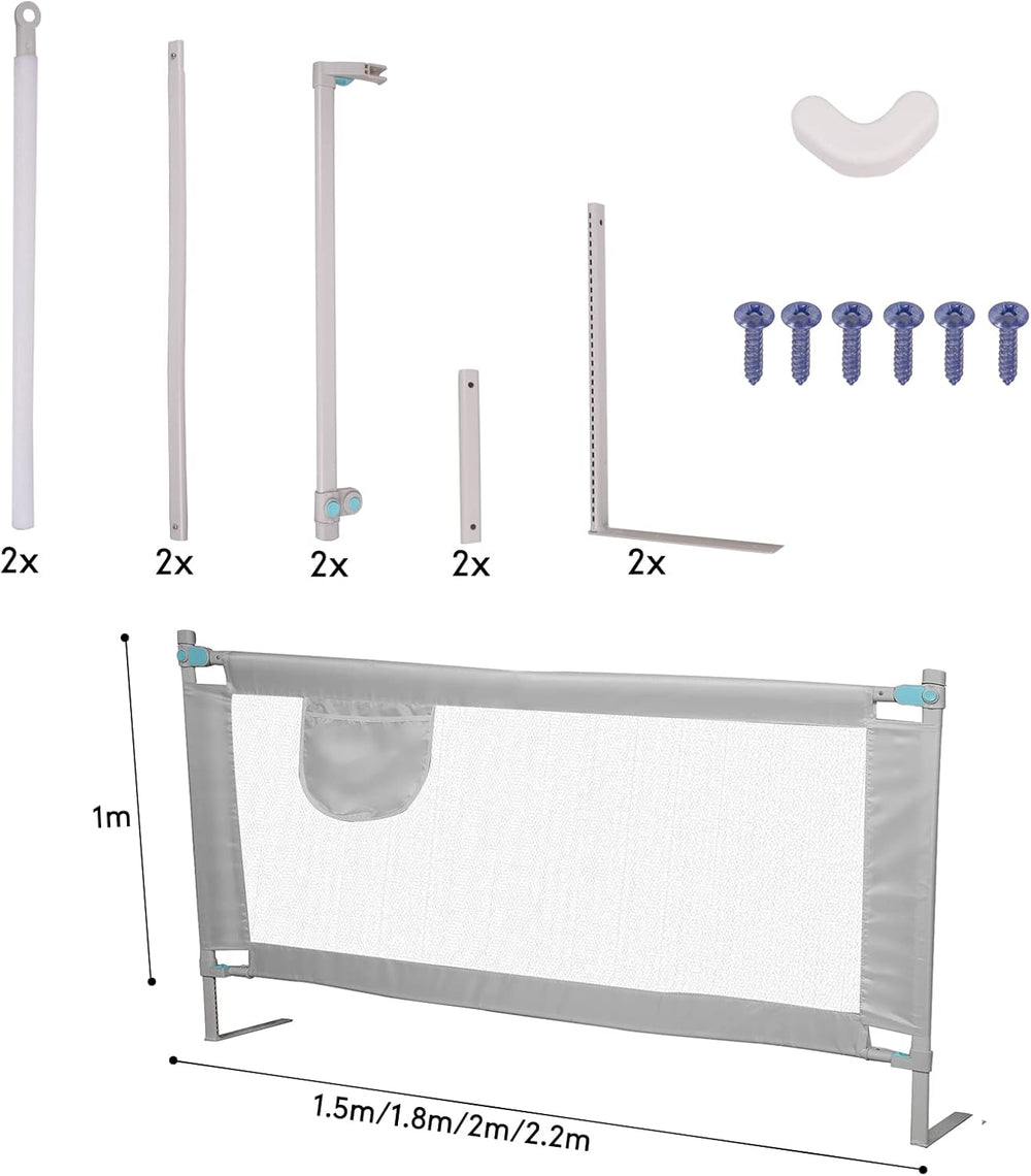 Sinbide Bettgitter, 150cm/180cm/200cm/220cm Kinderbettgitter, Klappbarer Bettschutzgitter für Kinder
