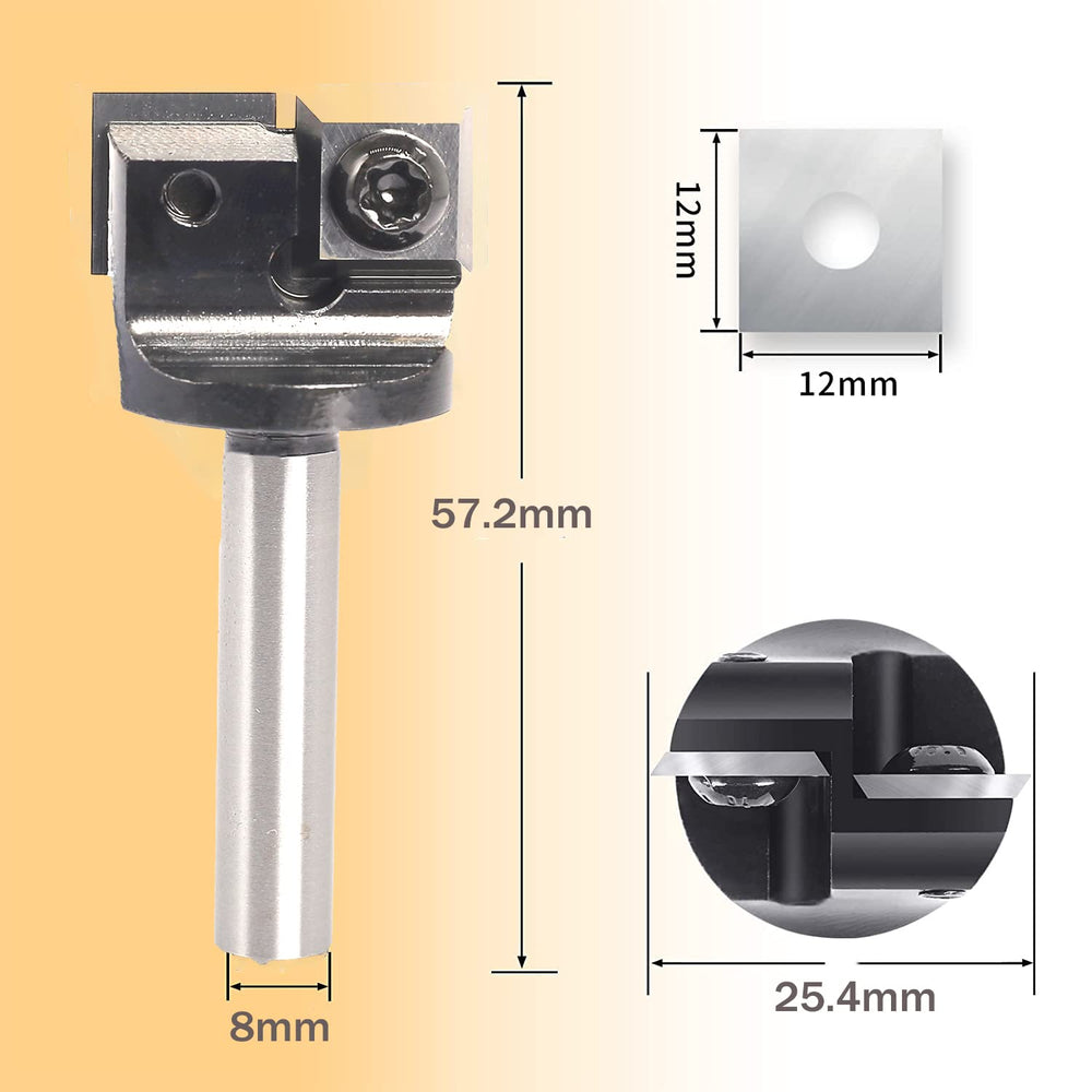 Sinoprotools Planfräser 8mm Schaft, 3-seitigem Hobelfräser mit Wendeplatten 12mm Hartmetallmesser, D